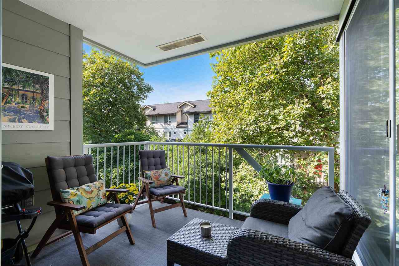 Fall in love with this beautifully updated 2 bed / 2 bath condo with corridor VIEW of the Fraser River! Fantastic layout with separated bedrooms, built in office/workspace for two, gorgeous kitchen with high-end appliances, large living space with toasty gas fireplace with beautiful mantle and built-ins, and a large, covered balcony with water views! Great amenities including gym/fitness room/hot tub/clubhouse with fabulous water view! Come check it out. .. you will love it here! Excellent lifestyle opportunity with walking/cycling paths and waterfront parks and green space nearby! Fabulous price-point for a unit this size and quality! Easy to show by appointment! Pets and Rentals allowed w/ restrictions. Have your agent call today to set up a showing!
