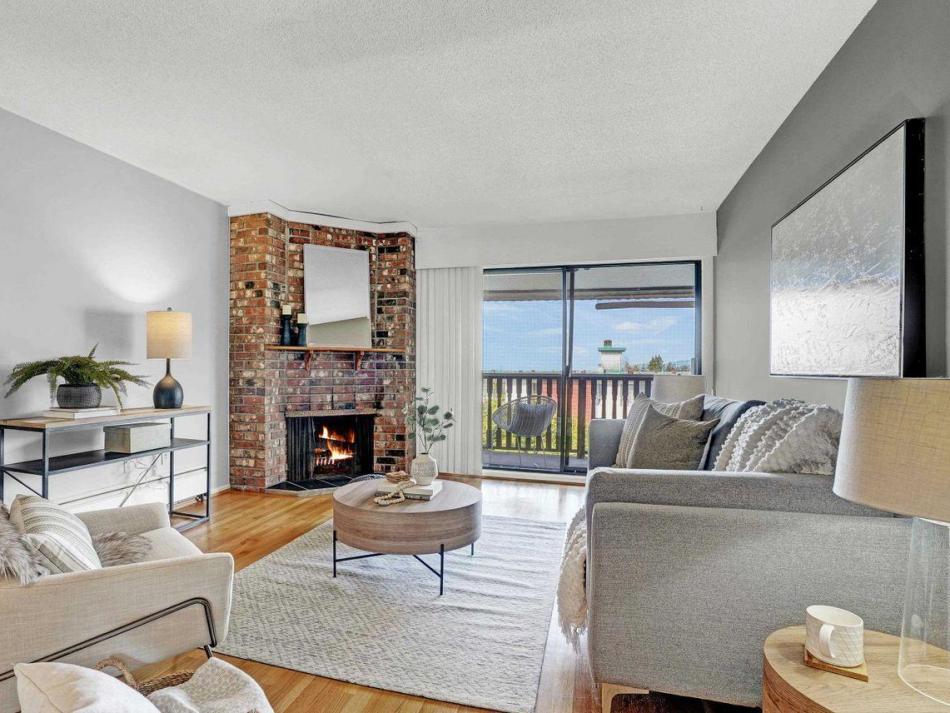Welcome to Canterbury House - a well cared for, owner occupied building conveniently located just 1 block off of Lonsdale! #304 is a large, top floor, west facing, two bedroom with small water, bridge, and mountain views! Enjoy the views from your full length, 221 sq ft, balcony, your living room, and both bedrooms. The unit features a wood burning fireplace to keep you cozy on the colder days, fabulous hardwood flooring throughout, Insuite laundry, and a large pantry off of the kitchen. The huge main bedroom boasts sliders to the deck, a walk through closet with vanity area, and direct access to the bathroom. Comes with 1 parking, and 1 storage locker. Pets allowed w/ restrictions. No rentals and no smoking. Excellent value for a large top floor unit in this walkable location!